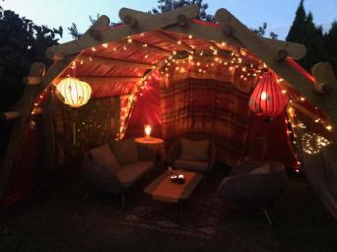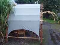 Interessanter selbsttragender Garten Pavillon in Lärchenholz "Woodsche"( Baum des Jahres 2012),Terrassenüberdachung, Marktstand, Carport, etc. Die Konstruktion ist zerlegbar und wird nur gesteckt, sie trägt in sich selbst. Vom berühmten Multitalent der Renaissance Leonardo da Vinci inspiriert und nach seiner Schnellbau Brücke adaptiert die er vor gut 500 Jahren zeichnete (1483).Masse: 300 mal 400 cm ( Grundfläche).Wahlweise mit Sonnensegel oder Wetterfester Bespannung in PVC Gewebe. Unterschiedliche Maße auf Anfrage lieferbar. Sprechen Sie mich für Detailfragen und Größen an ! Im folgenden Link sehen Sie einen Film vom Aufbau der Konstruktion: https://www.youtube.com/watch?v=muVY0slglIY