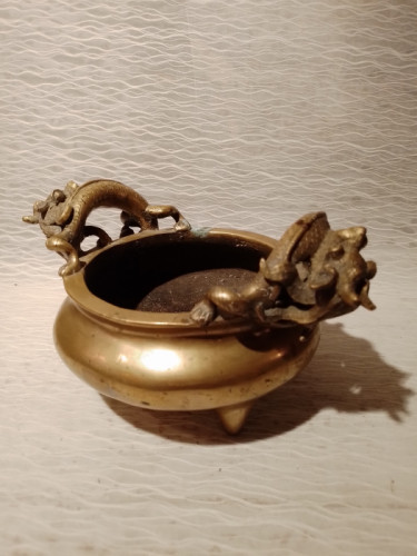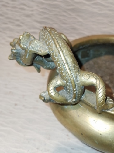 Grosser schwerer Chinesischer / Tibetischer Weihrauchbrenner der Quing Dynastie mit Drachen .