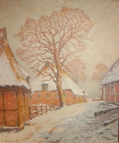 Stimmungsvoller Wintertag in Brodersdorf, Blunck schuf hier eine schöne Topografie einer Hofstelle in Brodersdorf in seiner typischen lockeren Spachtelmanier .