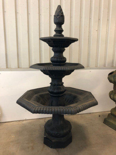 Imposanter Kaskadenbrunnen in schwerem Gusseisen, dieser Brunnen ist in den Farben Weiß, Braun, und Schwarz auf Bestellung erhältlich.Gewicht: 350kg,Breite 110 cm Höhe 210 cm. Weitere Info auf Anfrage.Dieser Brunnen hat zur Zeit eine Lieferzeit von 3 Monaten.