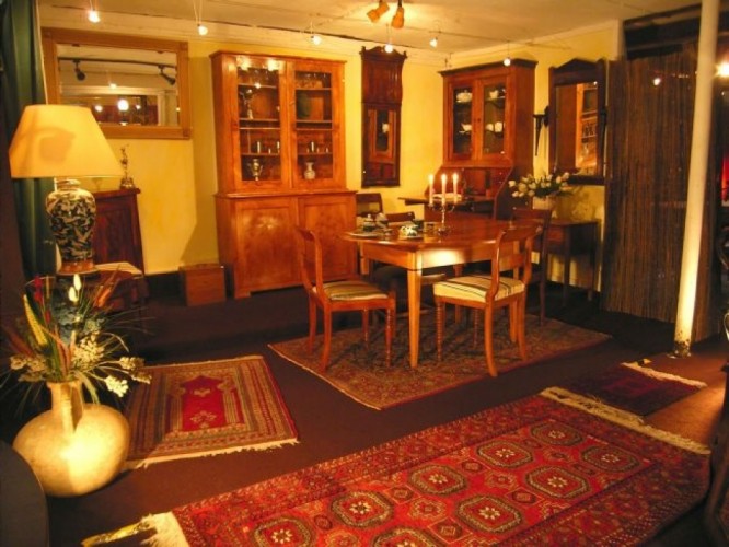 Ein schöner Essbereich mit einem frühen Biedermeiertisch um 1840 in Apfelholz.ANTIKHOF A7 NMS MITTE